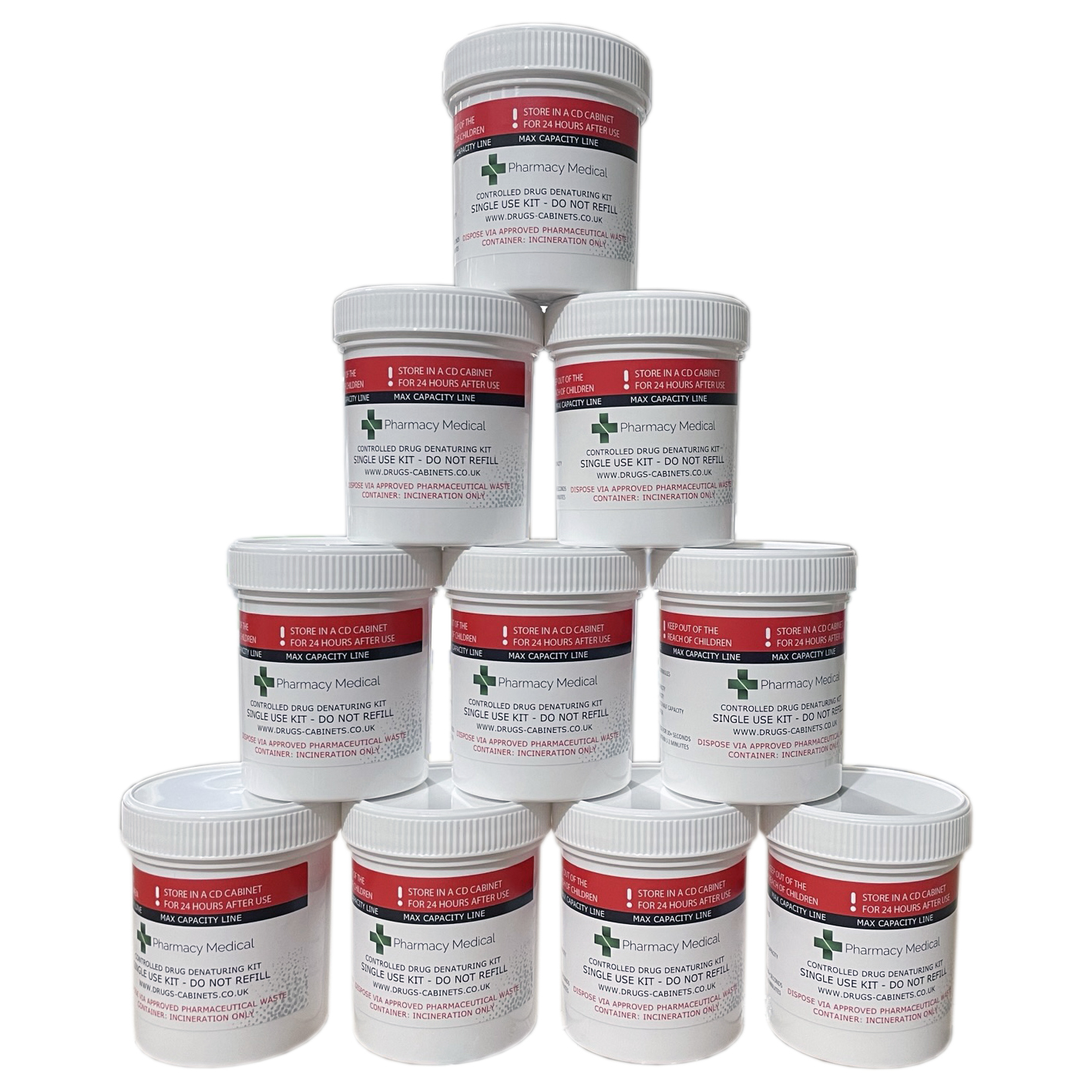 Designed to be a cost effective solution to drug denaturing, these kits are manufactured in the UK for quick delivery.
