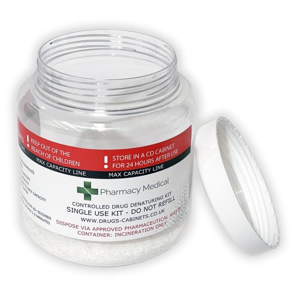 Designed to be a cost effective solution to drug denaturing, these kits are manufactured in the UK for quick delivery.