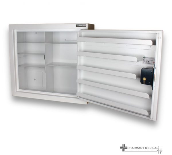 At Pharmacy Medical we manufacture this CDC102 Controlled Drugs cabinet in our own factory here in the UK. The cabinet conforms to BS2881: 1989 (Security Level One). This which is the specification for Cupboards for the Storage of Medicines in Health Care Premises. Furthermore, meets or surpasses the requirements of the “Misuse of Drugs (Safe Custody) Regulations 1973”. This is the requirement in the UK for the storage of controlled drugs.