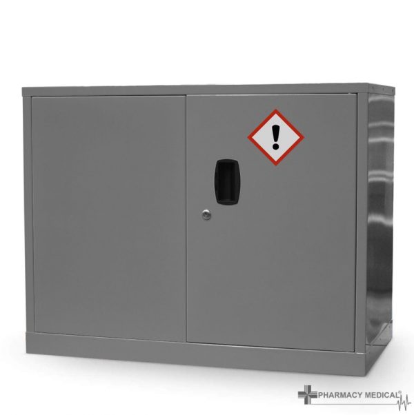 Pharmacy Medicalsā hazardous substance CoSHH cabinets are manufactured from CR4 1.2mm mild steel and finished in a Grey powder coat. Because of this, they are strong, durable, and easy to wipe clean. Furthermore, the cabinets include applied mandatory BS5378 warning labels.