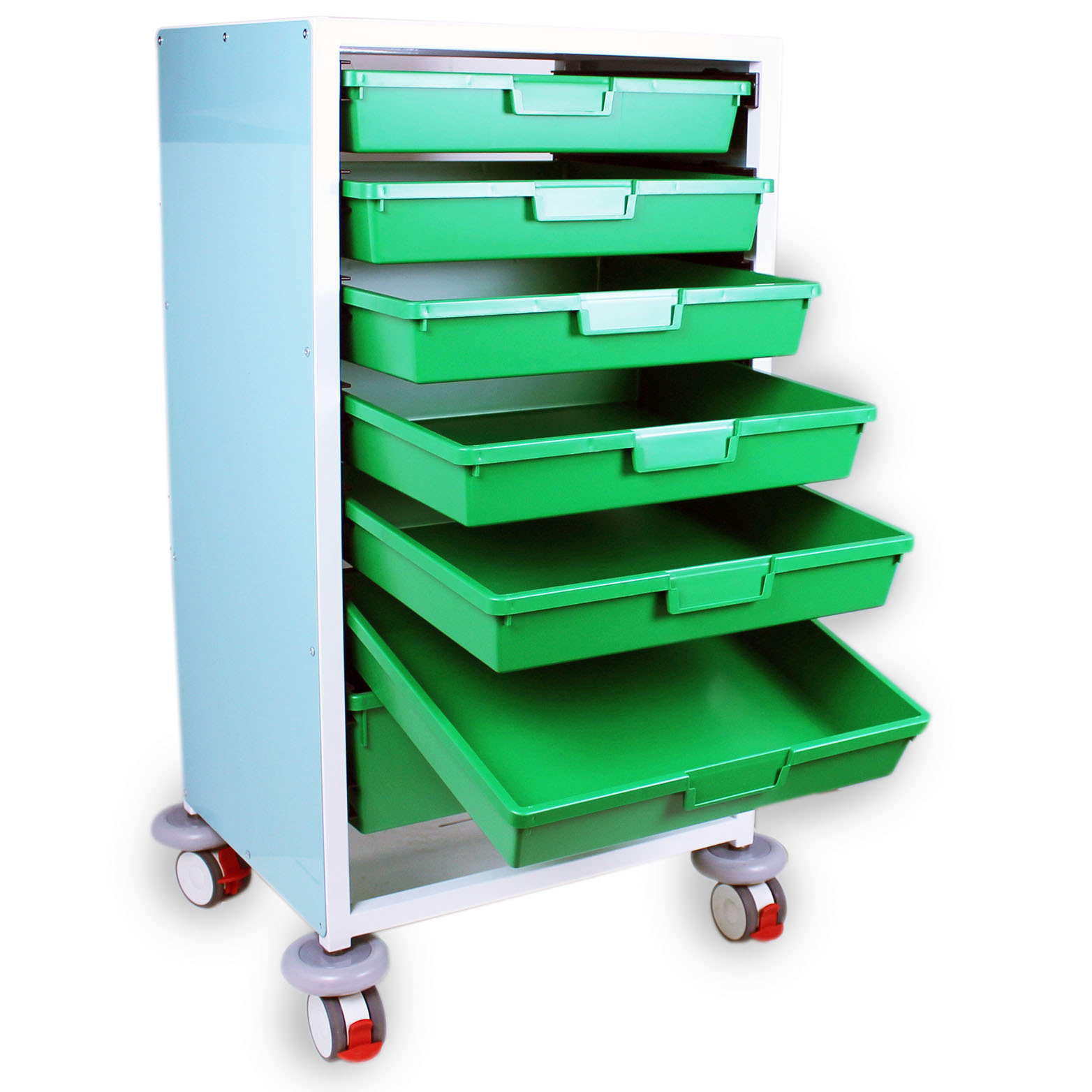 All ourĀ trolleys feature enclosed sides to improve the security of the contents stored within. Furthermore, these trolleys can be fitted with a locked door, increasing security further. As standard the trolleys are supplied with fixed antibacterial liners that can be easily cleaned and allow for multiple positioning of the optional trays they are designed to house.