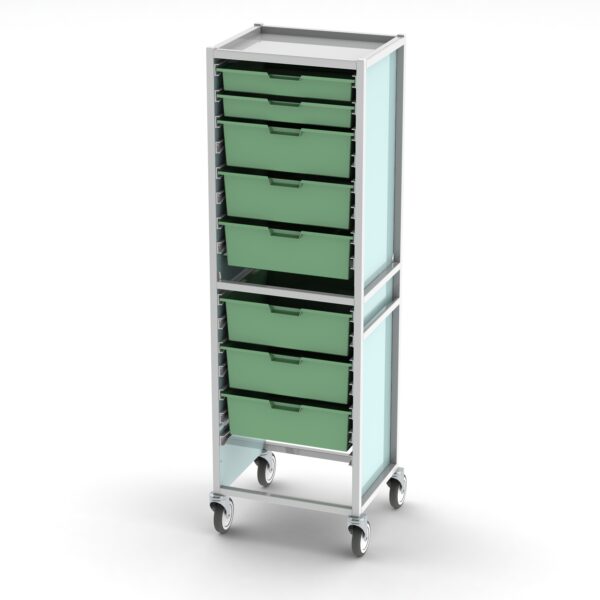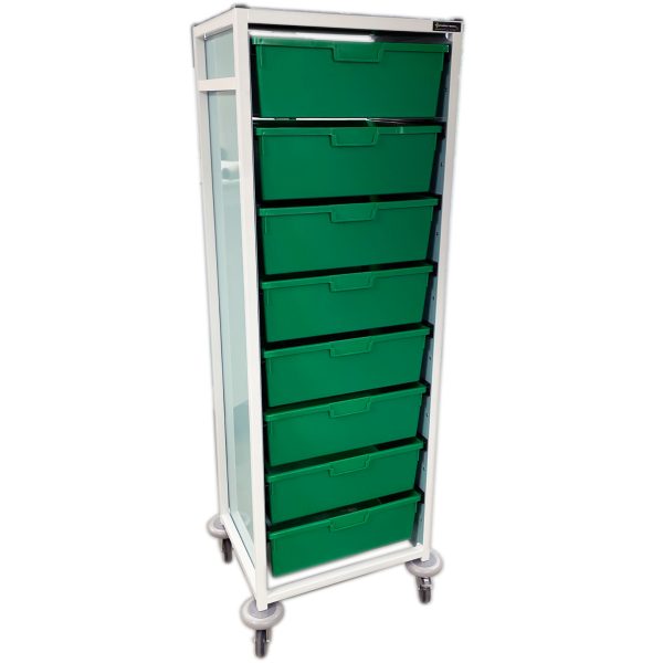 All ourĀ trolleys feature enclosed sides to improve the security of the contents stored within. Furthermore, these trolleys can be fitted with a locked door, increasing security further. As standard the trolleys are supplied with fixed antibacterial liners that can be easily cleaned and allow for multiple positioning of the optional trays they are designed to house.