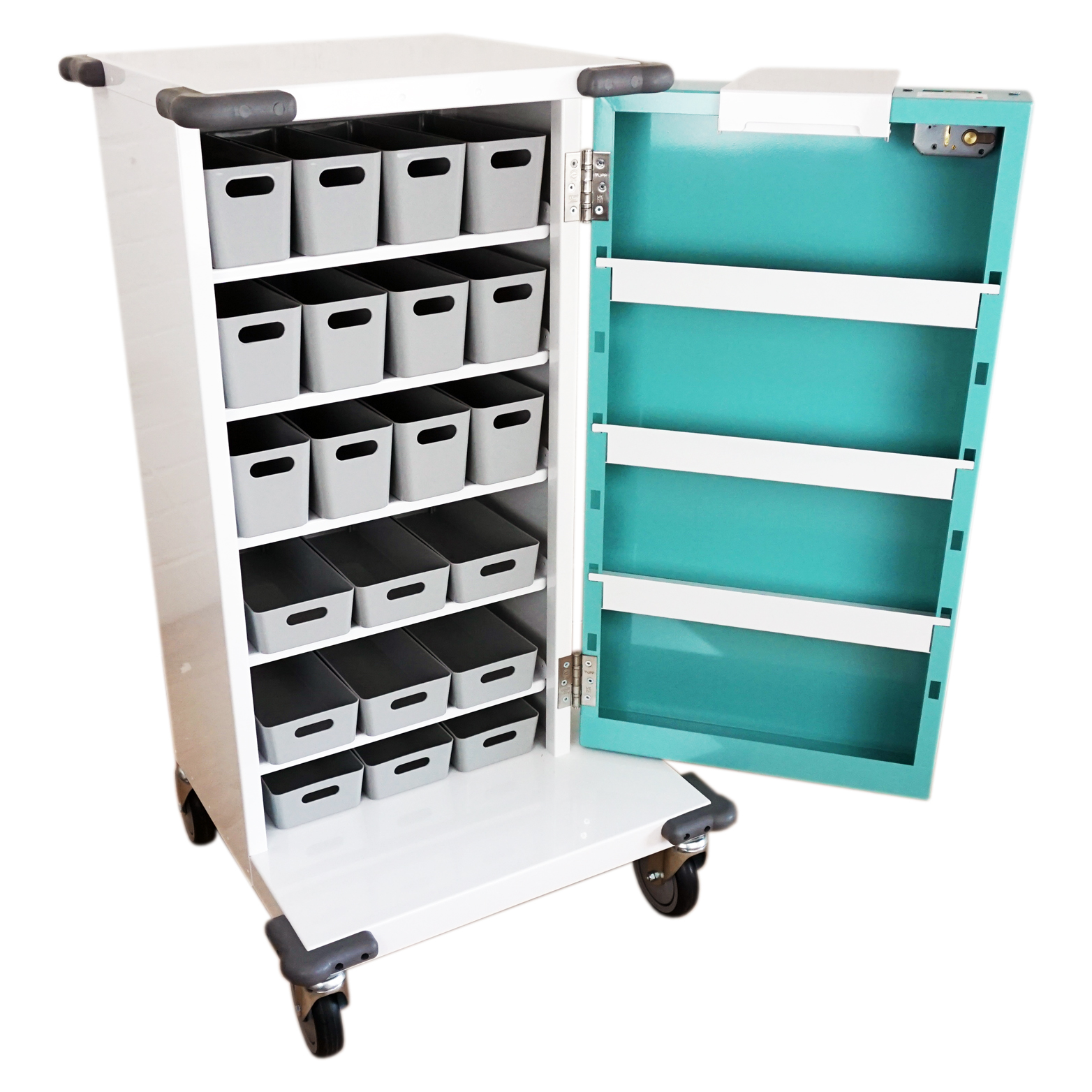 - LOCKS; we use the same lock on these trolleys as we use on our controlled drugs cabinets, ensuring they are strong and reliable. We also have an extended base, helping to protect the key if it is left in the lock.