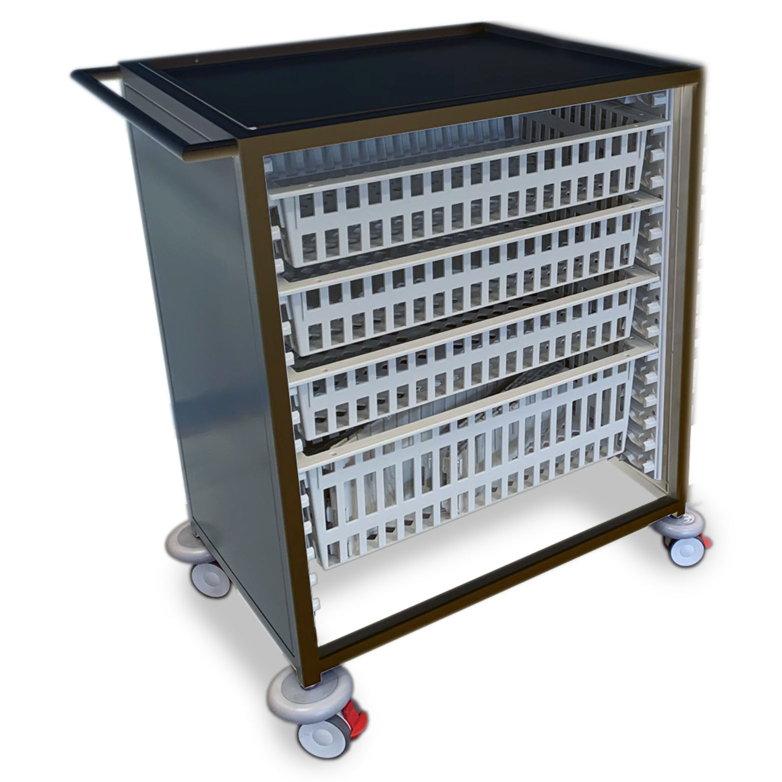 Manufactured in house at Pharmacy Medical, these HTM71 trolleys are designed to offer HTM71 compatible ward trolleys for storage and dispensing. Manufactured from either powder coated mild steel or medical grade mild steel, all our ward trolleys are fitted with 75mm braked castors for easy manoeuvrability. All our ward trolleys are also fitted with a removable stainless steel top and protective bumpers at all four corners.