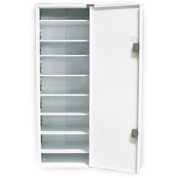Manufactured to the same standard as all our medicine cabinets, the tower units feature full length piano hinge down the length of the doors to improve strength. Manufactured in house at pharmacy Medical, these units are designed for the volume storage and organisation of medicines and are available here with shelving.